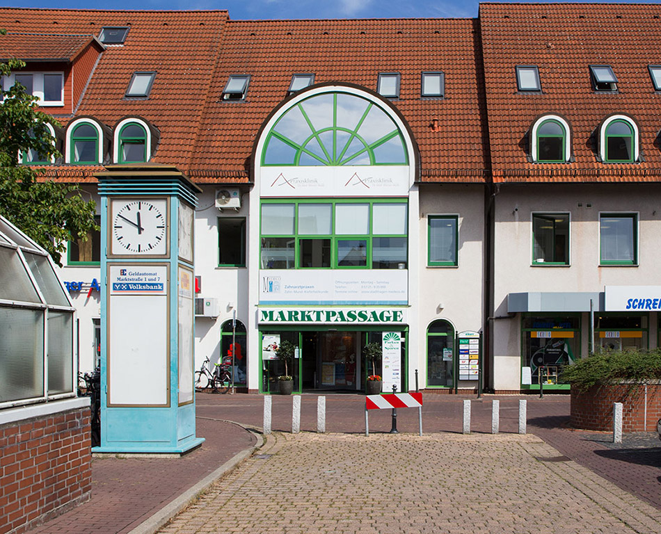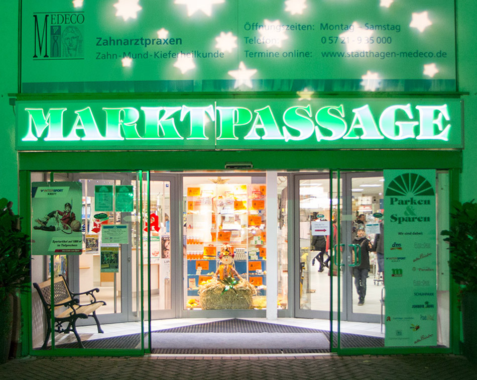 Die Stadthäger Marktpassage bietet Shopping- und Genusserlebnisse unter einem Dach, bei jedem Wetter. Verkehrsgünstig in der Innenstadt Stadthagens gelegen, direkt am Marktplatz trifft man sich hier zum Bummeln, Shoppen und Genießen. Die gute Mischung aus Einzelhandelsfachgeschäften und Gastronomie auf über 7.000 m² laden zum Verweilen und Entspannen ein, so dass nach einer ausgiebigen Shoppingtour auch der Genuss nicht zu kurz kommt.